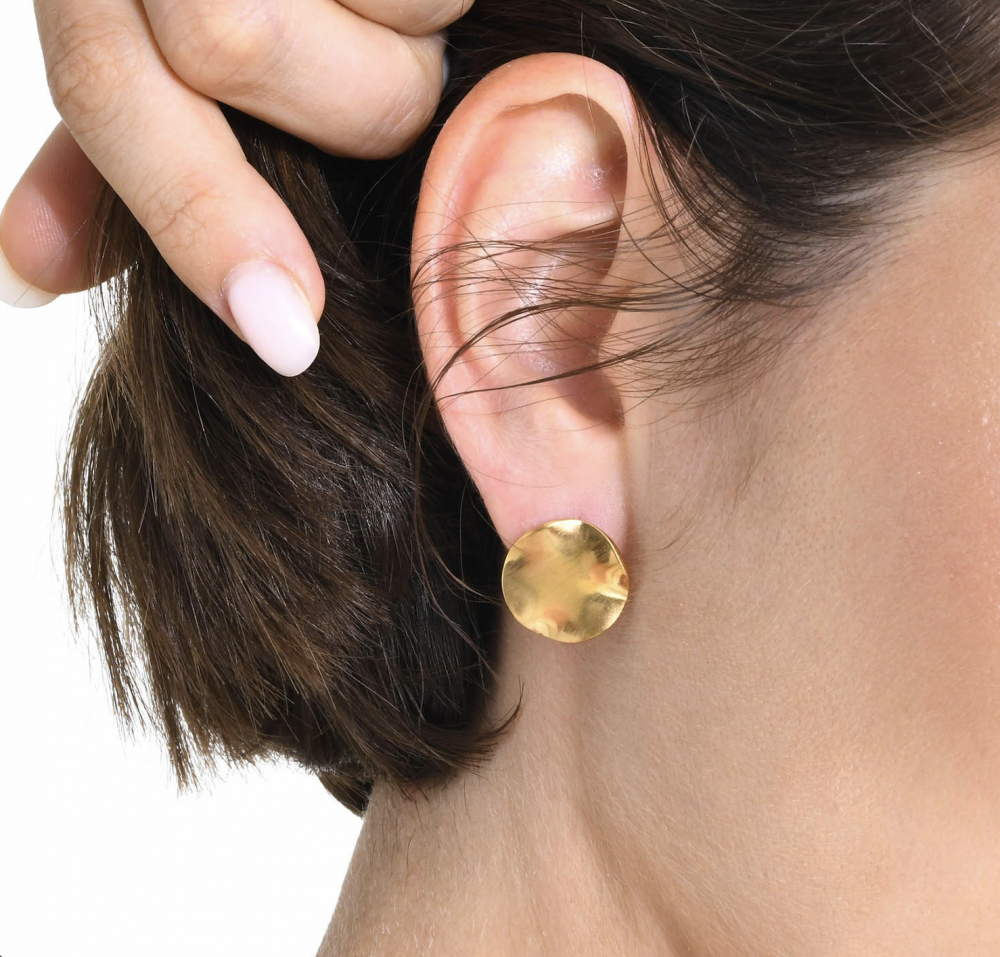 "NU TID" Ørehæng rund flad, 16mm,  18k guld PVD